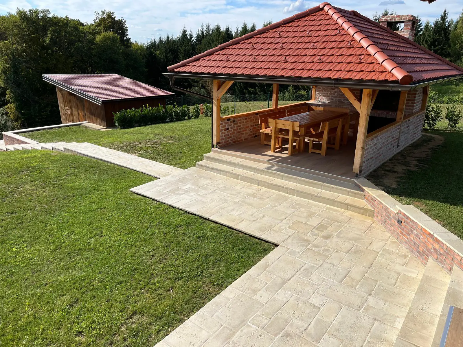 Prostrana sjenica s roštiljem i pečenjarom — idealna za druženja i obroke na otvorenom do 12 osoba.